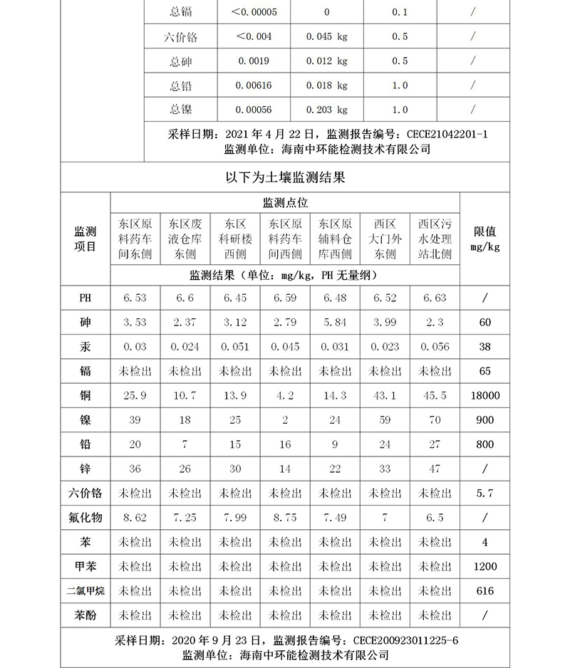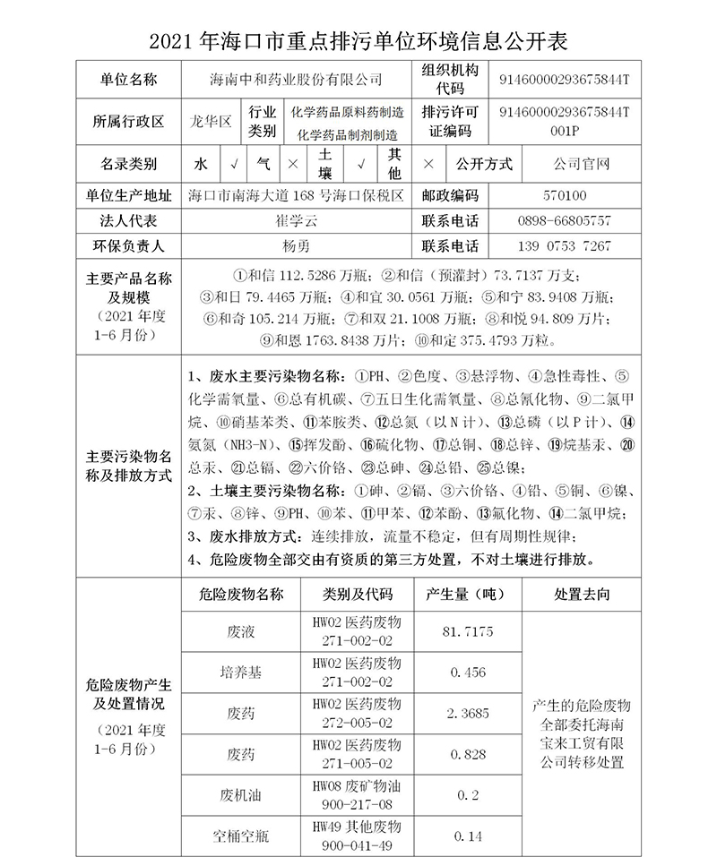 海南中和藥業(yè)--2021年??谑兄攸c排污單位環(huán)境信息公開表