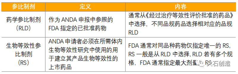來源:根據(jù)公開資料整理 在1984年美國《藥品價格競爭和專利期修正法》(Hatch—Waxman法案)通過之前,仿制藥的審批程序與原研藥基本相同,仿制藥上市前需要與原研藥開展相等的安全性和有效性等研究,導致仿制藥上市時間滯后、成本居高不下。Hatch—Waxman法案則極大地簡化了仿制藥上市審批程序,仿制藥企業(yè)無需提交全面的臨床研究資料,只需證明仿制藥與原研藥具有生物等效性即可,稱為簡略新藥申請(Abbreviated New Drug Application,ANDA)。此外,F(xiàn)DA還建立了仿制藥生物等效性的具體指南數(shù)據(jù)庫,為仿制藥企業(yè)開展生物等效性研究提供指導和幫助。 (二)參比制劑 為了避免仿制藥與原研藥在療效上出現(xiàn)偏差,F(xiàn)DA規(guī)定了相同化學成分藥物的參比制劑,仿制藥只能將該參比制劑作為評價體內(nèi)或體外治療等效性的標準藥物。仿制藥與參比制劑應具有相同的活性成分、劑型、規(guī)格、給藥途徑和說明書。FDA將仿制藥參比制劑分為藥學參比制劑(reference listed drug,RLD)和生物等效性參比制劑(reference standard,RS)。 表1:美國仿制藥參比制劑
