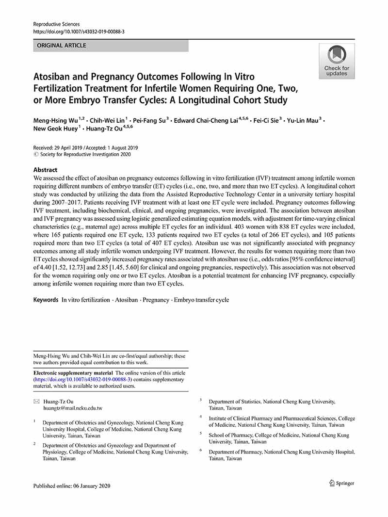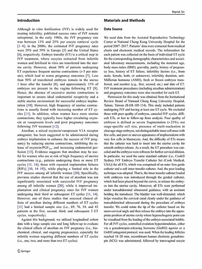 結(jié)論:注射阿托西班是一種潛在的提高體外受精妊娠率的治療方法,特別是在需要兩個(gè)以上胚胎移植周期的不孕婦女中。